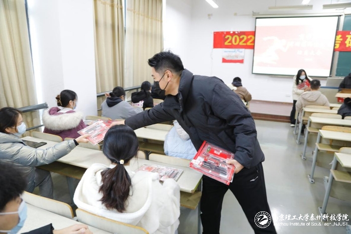 会后,许小军带领各专业负责人为考研学生代表发放了大礼包(备考文具和口罩)。