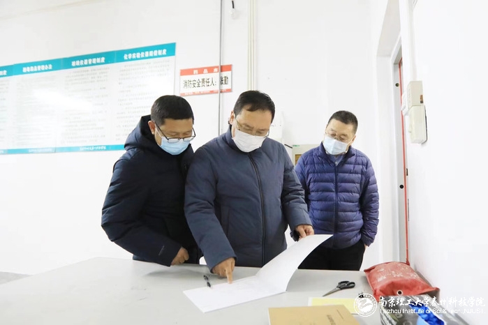 副院长兼党政办公室主任刘桂涛对城市建设与设计学院、环境与制药工程学院等重点单位测验室安全落实情况进行了专项检查。