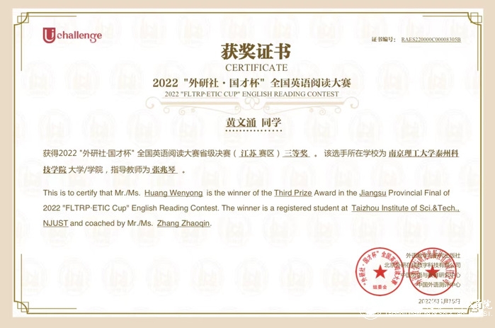 10月29日,2022年“外研社·国才杯”全国英语阅读和写作大赛省级决赛落下帷幕。此次比赛共有来自77所高校的452名同学参加,经过大赛组委会评审,金年会app英语专业王倩同学获得写作大赛省级三等奖,软件工程专业黄文涌同学获得阅读大赛省级三等奖。