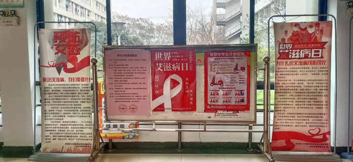 12月3日至4日,金年会app在一食堂门口及各学生公寓大厅摆放展架、张贴海报,开展艾滋病防治知识宣传。