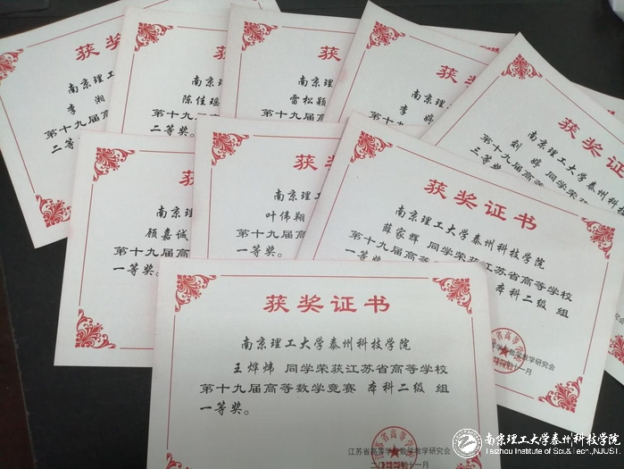 喜报:金年会app学子在江苏省第十九届高等数学竞赛中获佳绩